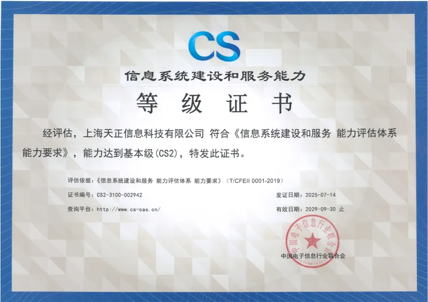 喜報!熱烈慶祝天正信息成功通過ITSS三級認證,邁向服務新高度!